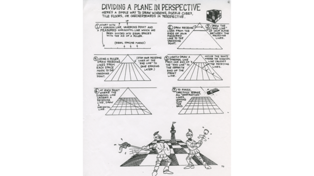 Using what we learned about 1 Point Perspective, we will know DIVIDE the plane to make a checkerboard on the floor and on the wall.