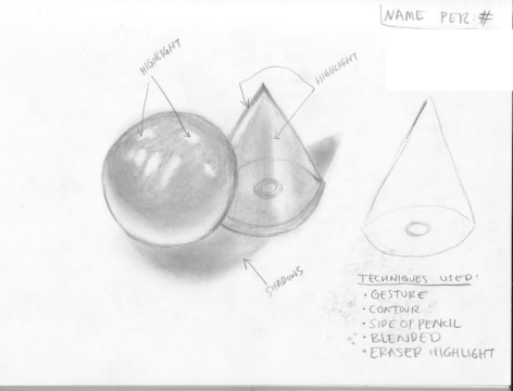 Use at least 3 of the pencil techniques to draw the ‘still life’.