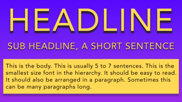 Sub-Headline– a short sentence, medium size